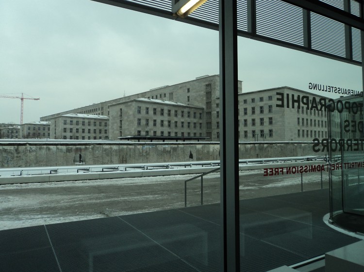 One of 12 pieces in German and English about the Topography of Terror, in Berlin.