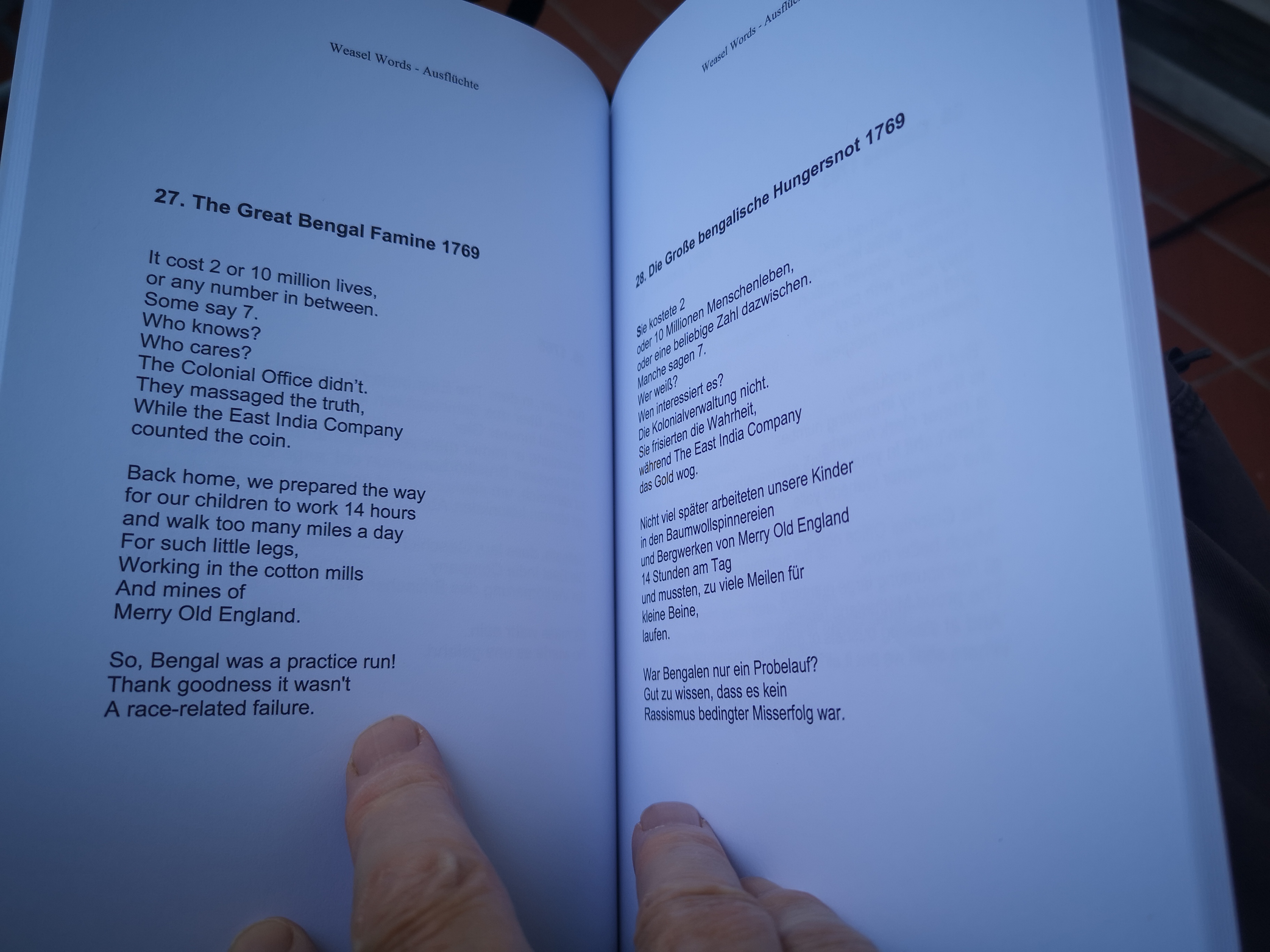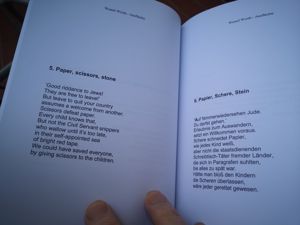 It works better in English (for me), because I can pep it up a bit in translation, to make it stronger. I’ve replaced Wunsch. which means <wish> with <desire>. Goethe couldn’t use desire in German. Lust sounds too coarse. Is this allowed? As Heinrich Böll said, ‘You put it out there, you lose control of what people do with it’. I call it, artistic licence. Goethe would be furious.