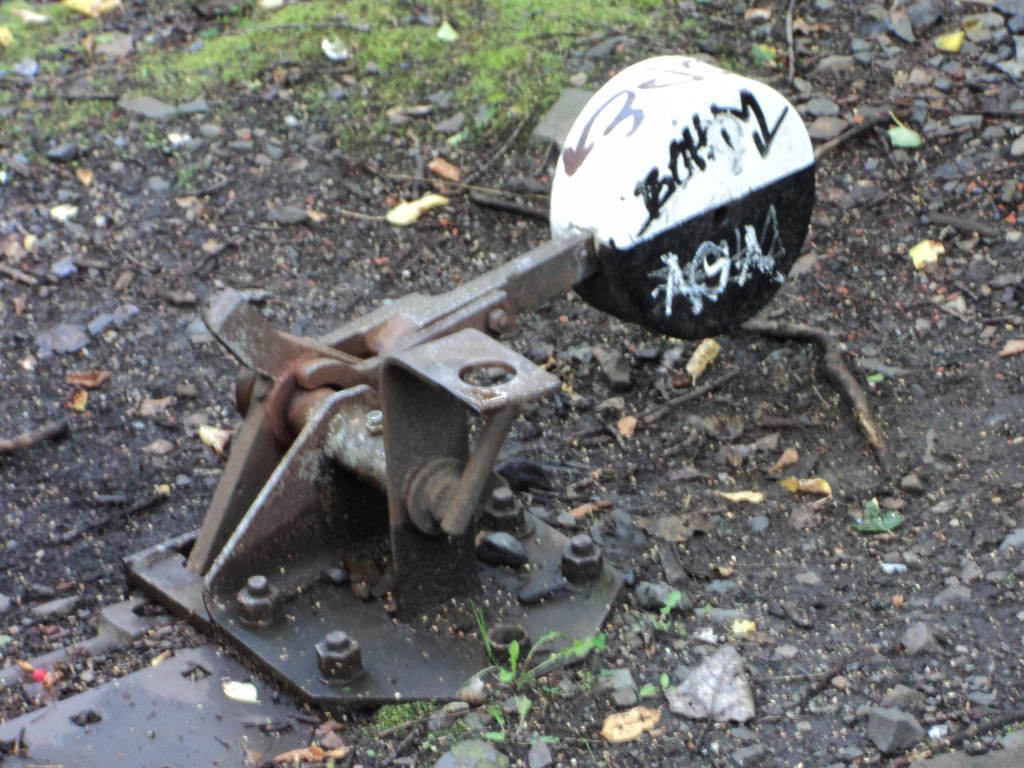 The clever art work comes in two forms. The stuff that artists have been encouraged to scatter round the park, much of which one can climb on, and that which nature has turned into art. The once proud points-controller, now sticks its round bulbous black and white lever in the air, but the points can no longer be set. Bunches of grass have long since jammed the movement of the rails.