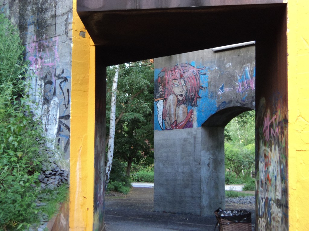 There are several entrances to the Südgelände. The best to take is the one next to the S-Bahn station Priesterweg. Then you will walk through an underpass, beneath the railway lines and will see the graffiti on the bridge pillars. It is brilliant! I thought, ‘There must be a book to be written that needs that picture on the cover.’ OK – I know. Most writers produce a story and then seek an image for the cover. I saw the image and sat down to write Goddesses. It’s finished and is about a woman who uses the lives of pagan goddesses to release herself from her repressed sexuality.