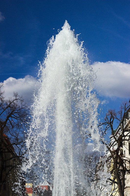Anyway, we can’t see his face, as it is well covered in shirt and he presumably (like me) has only limited vision. That isn’t stopping him. He climbs into the fountain basin and wades round trying to keep dry. Can’t be done! After two rounds of the fountain, he is soaked. At the end of his fountain odyssey he stops. He punches the water vertically two or three times with his left arm which has a strange dark blue colour. I can’t identify why or what he is wearing on his arm. He then climbs from the basin and walks off, head still covered, jeans still rolled up to over his knees, as though his actions must be comprehensible to his audience. I realise the dark blue arm colour is a plaster-cast or something similar to hold a fracture firm. Perhaps the tour round the fountain gives him a few minutes relief from itching under the plaster.