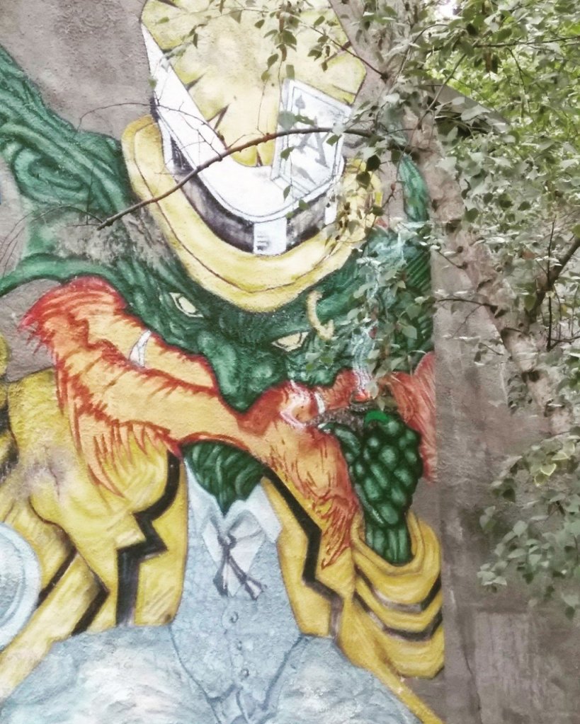 I have recycled graffiti-woman in my forthcoming book on public artworks in Berlin. I photograph and then complete my study the work by writing a Haiku. I stick to the traditional form of 5:7:5 syllables per line, with a twist to the last line, but accept this is unnecessary in our modern days of rejecting strict form.