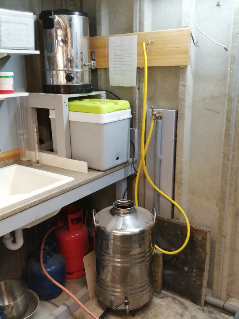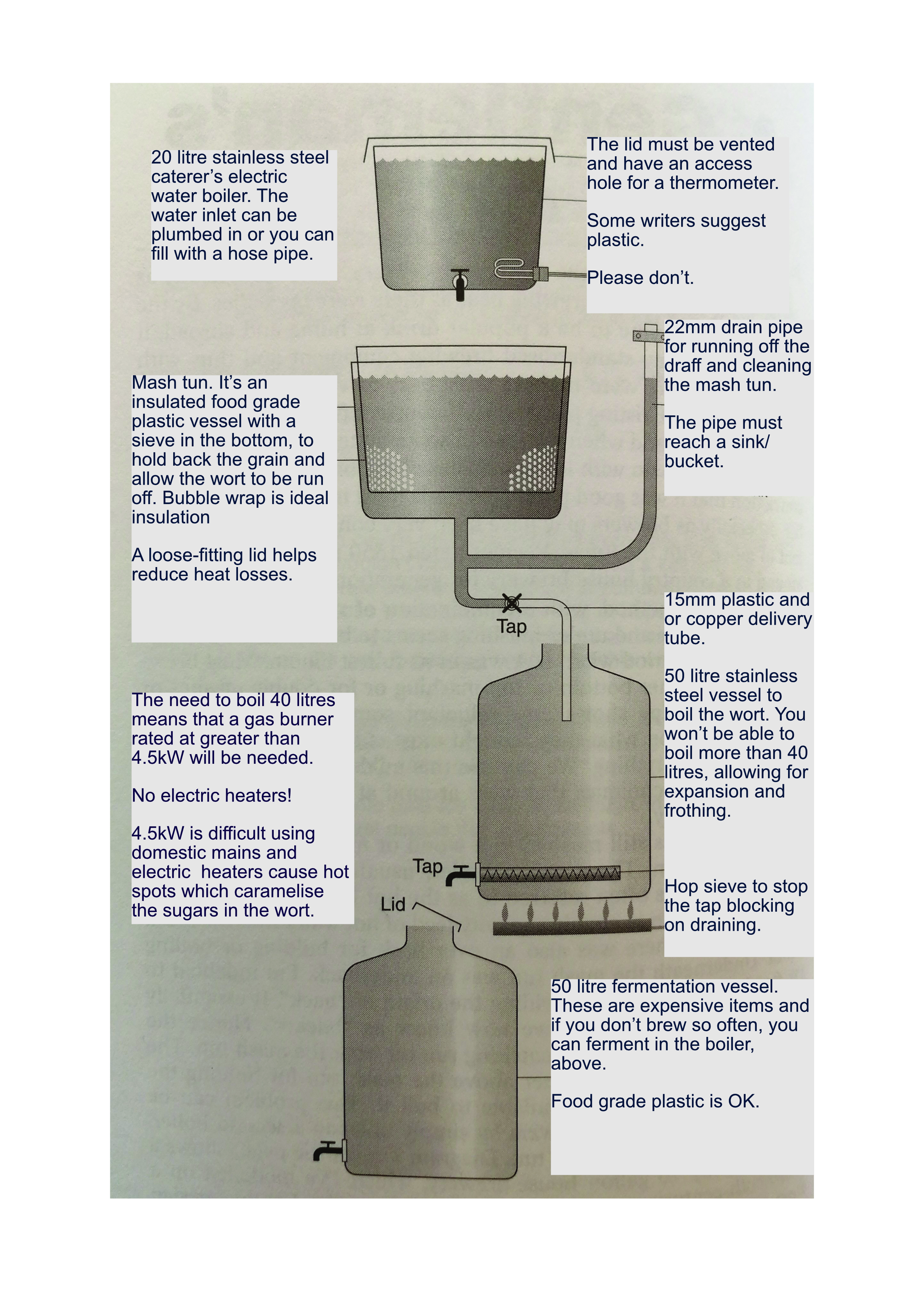 You need space. Space is good, but if you don’t have much, then taking over the kitchen is an option. It’s only for a few hours. I have brewed for 40 years on a dedicated space of about 1.5 square metres. Confined brewing is helped by a gravity fed system, and details on that can be found in my eBook on pale ale, or the paper version, The Craft of House Brewing.